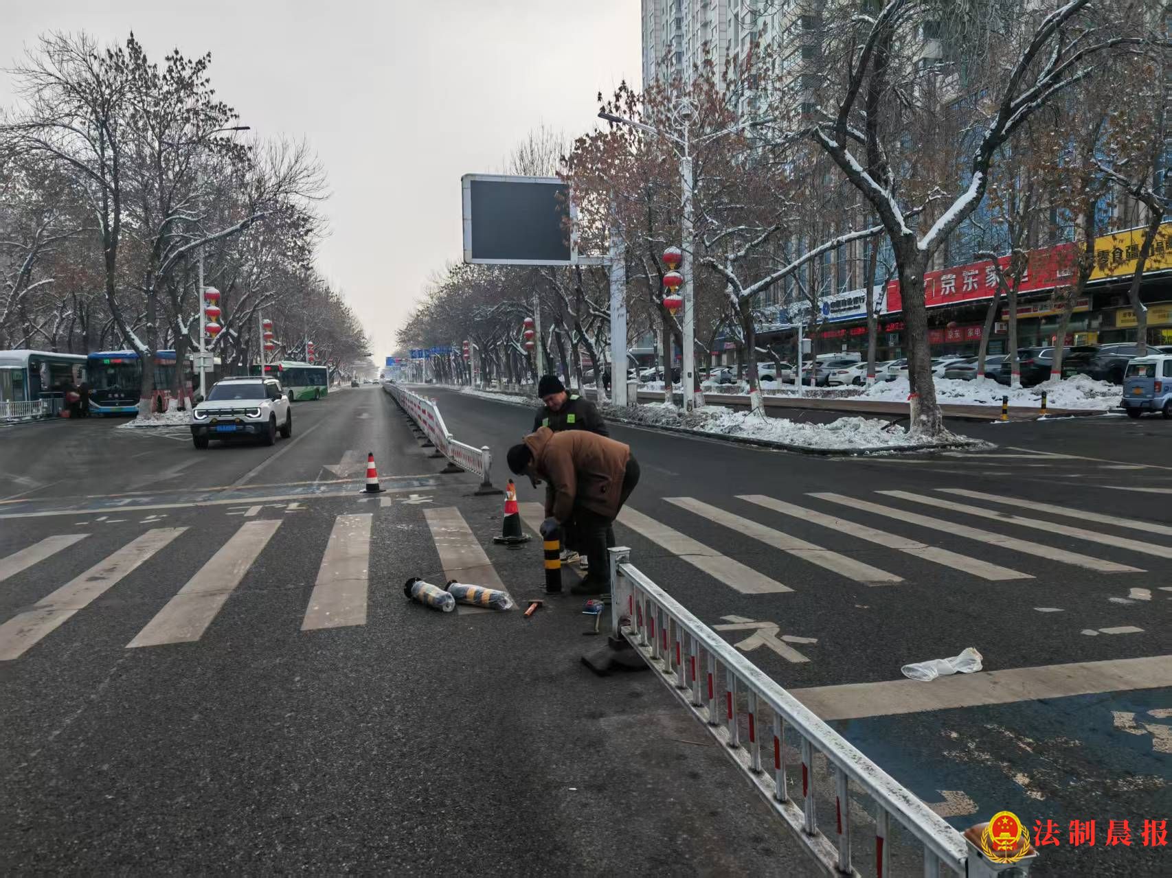 为斑马线加装“安全卫士”市政部门护航市民冬日出行
