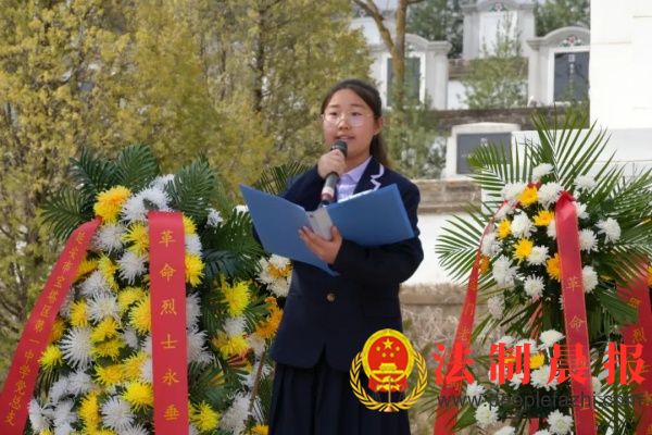 德育主任刘开锋带领全体初一学生在纪念碑下宣誓,誓言掷地有声,在墓园上空久久回荡,表达了同学们传承革命精神,为实现中华民族伟大复兴而团结奋斗的坚定决心!