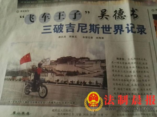 导读: 法制晨报江苏电(董培勤 徐新新)从淮河之畔的热血青年,到享誉全国的飞车王子;从吉尼斯纪录的挑战者,到心系家国的公益先锋,吴德书用半生时光,书写着盱眙儿女的担当与赤诚。 1971年出生的他,三次问...