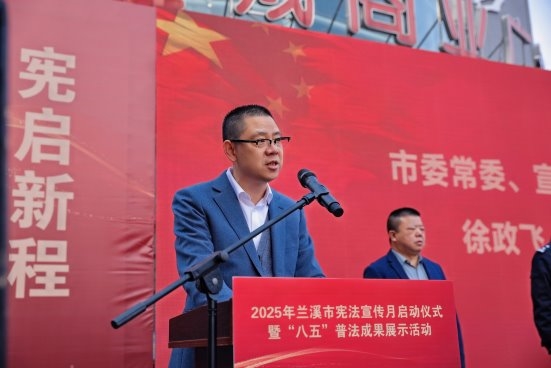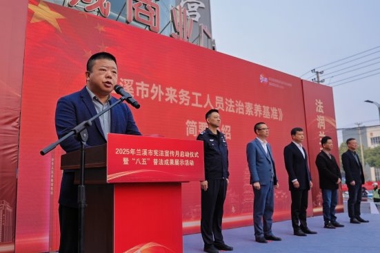 市委常委、宣传部部长徐政飞在讲话中要求,以“八五”普法规划收官、“九五”普法规划谋划为新起点,以《兰溪市外来务工人员法治素养基准》发布为抓手,推动普法工作提质增效,让尊法学法守法用法在全社会蔚然成风,合力开创法治兰溪建设新局面。