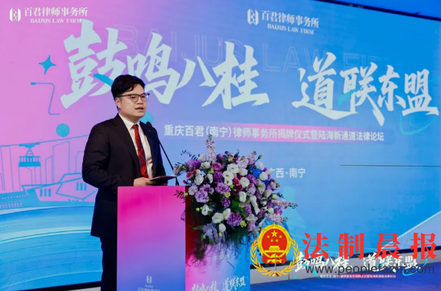 南宁,得名始于南疆安宁之意。千年前,这里的商船便沿江而下,成为海上丝绸之路的重要节点,开放包容的精神也由此深深融入这座城市的血脉之中。作为中国面向东盟的国际门户,南宁以其得天独厚的地理优势,成为百君全国战略布局中的重要落子。11月15日,重庆百君(南宁)律师事务所揭牌仪式暨陆海新通道法律论坛在南宁会展豪生大酒店隆重举行。