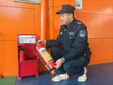 “消防器材完好、无损坏,厂房区域无安全隐患……”大年初一,保卫部值班人员王军峰正在对地面厂房的安全防火情况和消防器材完好情况进行全面细致的检查,一边检查一边认真记录。